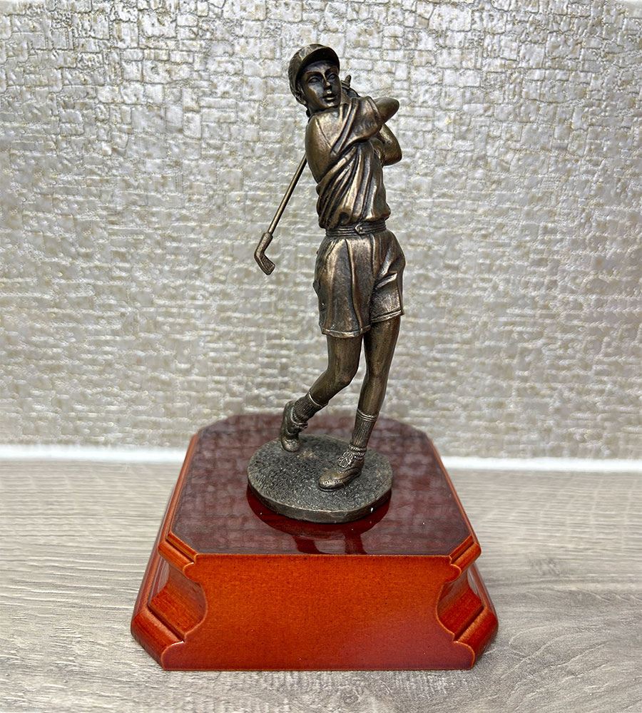 Finely Detailed Bronze Resin ‘Full Swing” Female Golfing Figure 4.5″