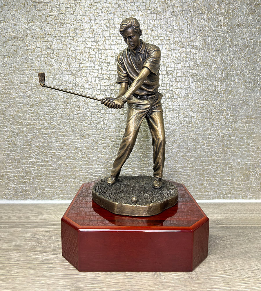 Finely Detailed Bronze Resin “Mid Swing” Large Golfing Figure 8″