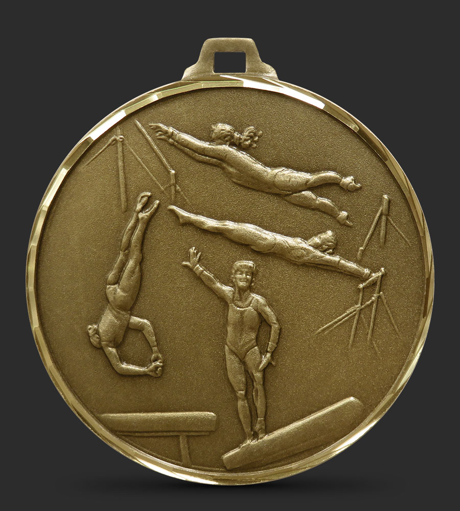 A hand faceted, intricately embossed Brass Gymnastics Medal depicting female gymnast.