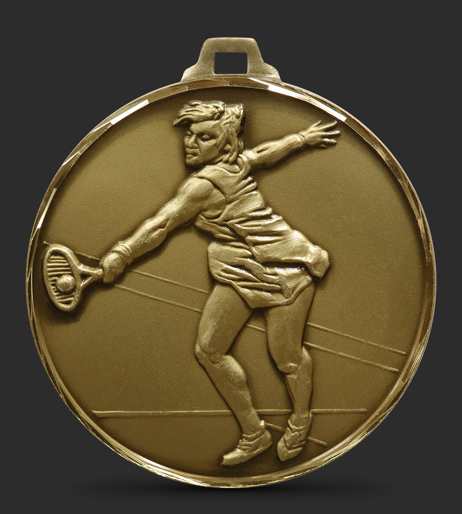Brass 52mm Hand Faceted Female Tennis Medal