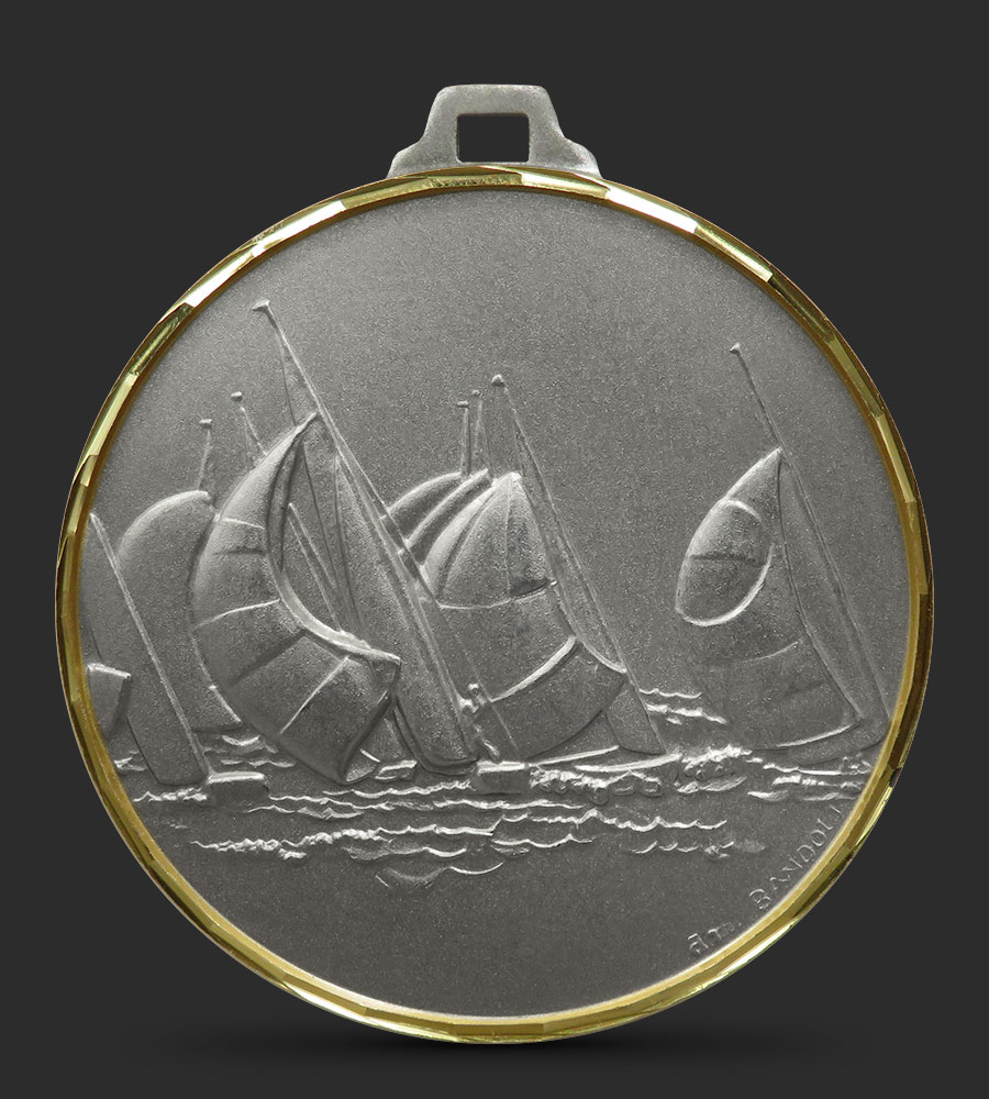 A hand faceted, intricately embossed Brass Sailing medal depicting several sailing boats.