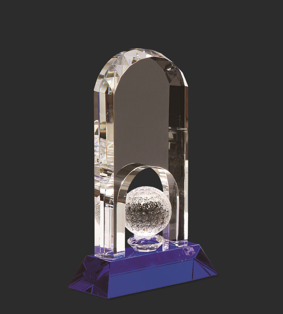Crystal Golf Award on Wooden Base