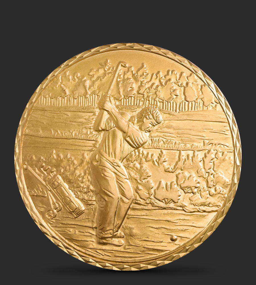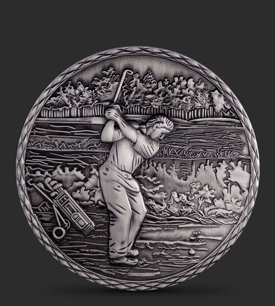 Imitation Facet Intricately Detailed Golf Coin 4mm thick depicting a golfer taking a swing