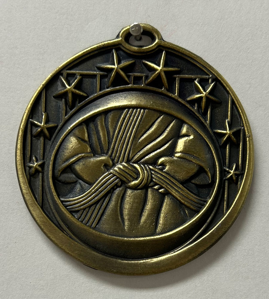 A 50mm Martial Arts Medal Depicting a Tied Belt with a Stars Garland